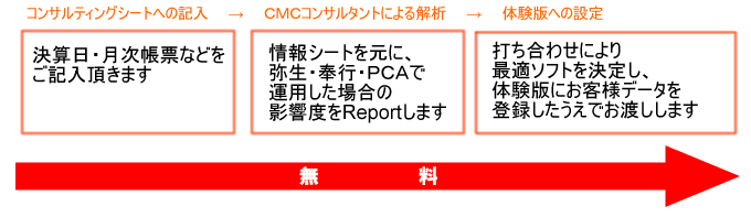 お客様に訪問営業をするコストのかわりに、無料コンサルティングサービスというコストによりCMCの能力をお客様に評価して頂きます。
